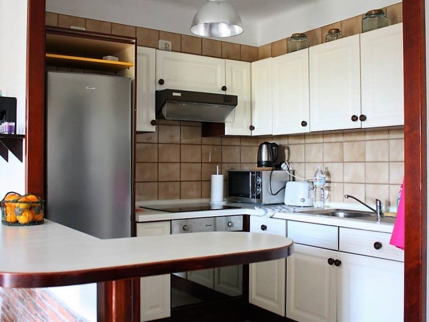 Sollte die Wohnung mit mehr als 2 Personen gebucht werden, so kann das Sofa im Wohnzimmer zu einem Schlafplatz für zwei weitere Personen umgebaut werden. Neben dem Sofa befindet sich noch ein Beistelltisch und Internet ist ebenfalls vorhanden.