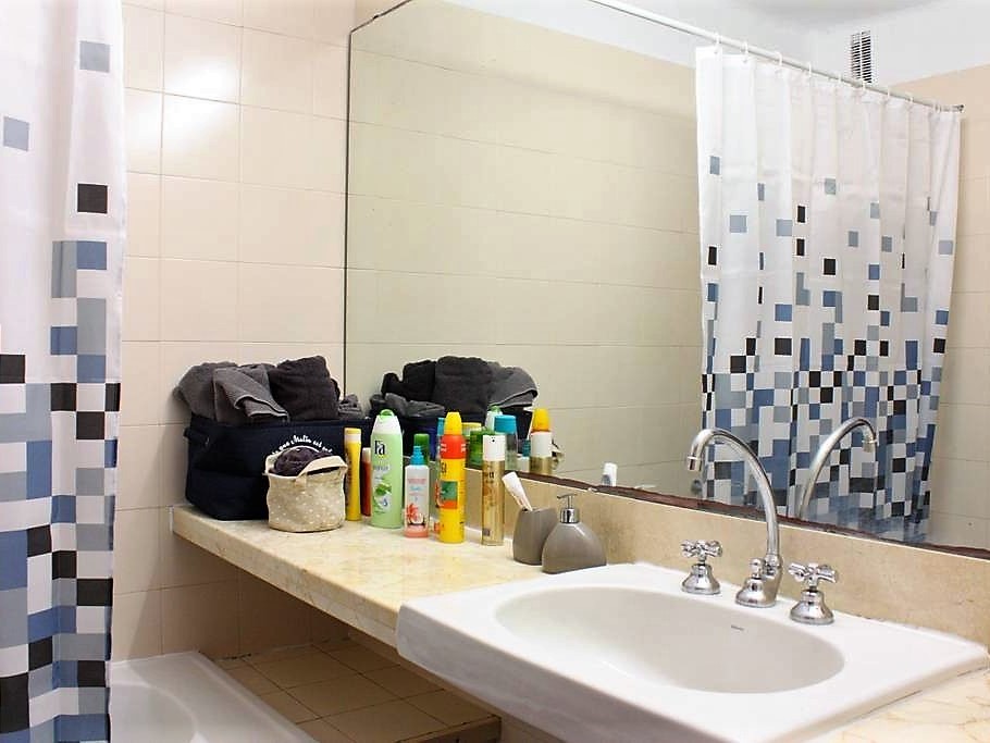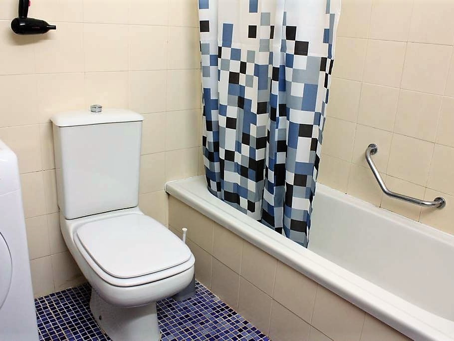 Das Badezimmer des Ferienapartment in La Paz bietet neben dem WC und dem Waschbecken eine Badewanne samt Dusche. Hier befindet sich auch die Waschmaschine.